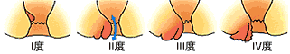 I度:排便時に出血がみられますが、痔核の塊は肛門の外に脱出することはないもの。 診 断痔核は、肛門内の皮膚と直腸粘膜の接合部付近にある静脈叢(静脈の塊)が発達し、うっ血して大きく膨れ脱出する病態です。狭い意味では前者を痔核と呼びますが、両方を広い意味で痔核として扱います。 治 療I~II度は軟膏や坐薬などで治療します.しかしIII度以上やI度でも出血が多い場合や痛みが強い場合は,手術治療が最善の方法です.その他,軽度の症例では、当院では、外来にて硬化療法やゴム輪結紮法を行なっております。4~5分間で処置は終了し、痛みはほとんどありません。 手術治療 当院では、現在主流の結紮切除術を行なっております。痔核のあるところだけを切除します。肛門の縁より2cmほど離して皮膚を切開し、肛門括約筋から静脈叢を剥がしとります。奥は痔核組織の上縁まで十分に切除します。太い痔動脈が痔核組織に向かってきていますので、それを縛り、痔核組織を切りとります。常に便で汚染される場所なので、肛門の外の傷(ドレナージ創)を十分にとるなど、化膿させない工夫がなされています。 1.痔核 - 外痔核症 状