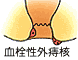 内痔核が大きく腫大脱出し、肛門を締める筋肉(肛門括約筋)で絞められることにより発生します。循環障害により痔核表面が腐りかけ、周囲にかなり強いむくみを伴います。痛みは強く、痔核を肛門内に戻すことは困難です。