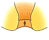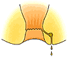 肛門の上皮が浅く裂けている状態で、発症から日が経っていない状態をいいます。かゆみを感じることもありますが、多くは排便時の痛みと出血がみられます。出血は軽度で、トイレットペーパーにつく程度です。